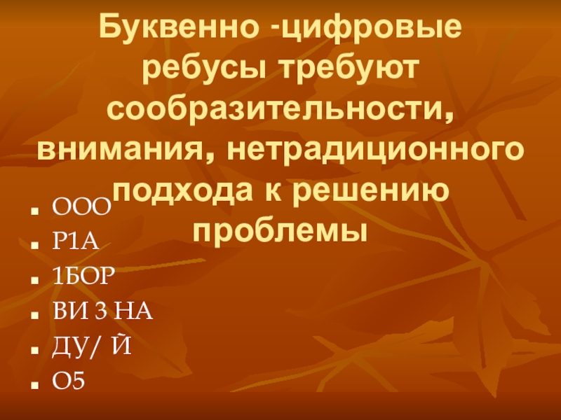 Буквенно -цифровые ребусы требуют сообразительности, внимания, нетрадиционного подхода к решению проблемы