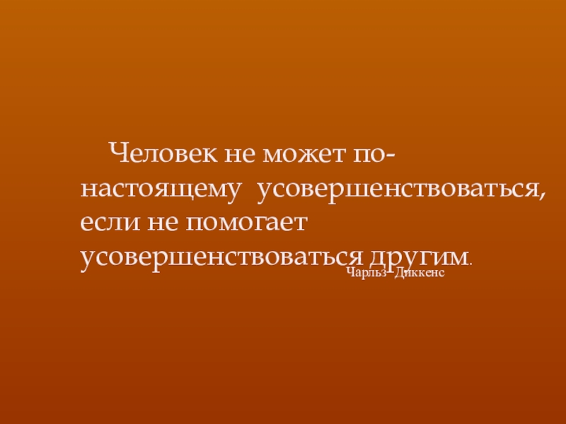 Слайд 45Человек не может по- настоящему усовершенствоваться, если не помогает усовершенствоваться другим.