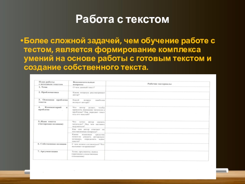 Слайд 12Работа с текстом