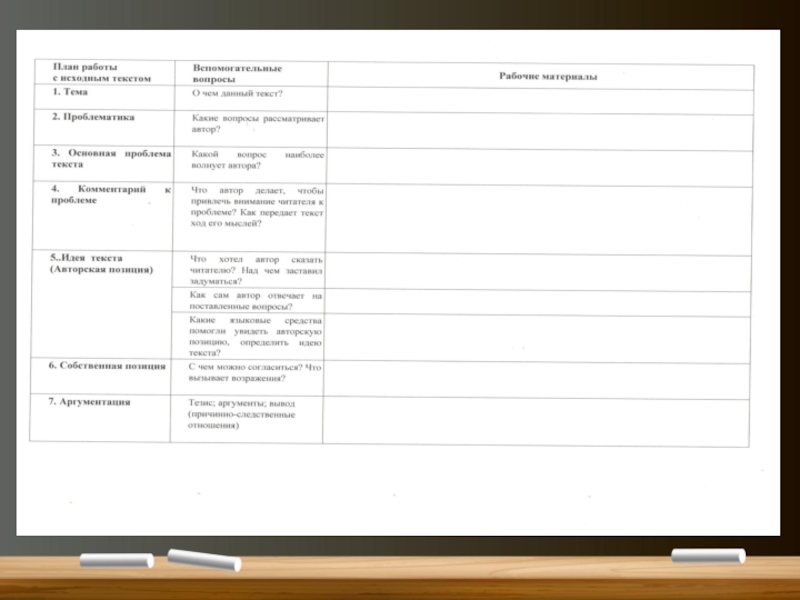 формирование комплекса умений на основе работы с готовым текстом и создание собственного текста.