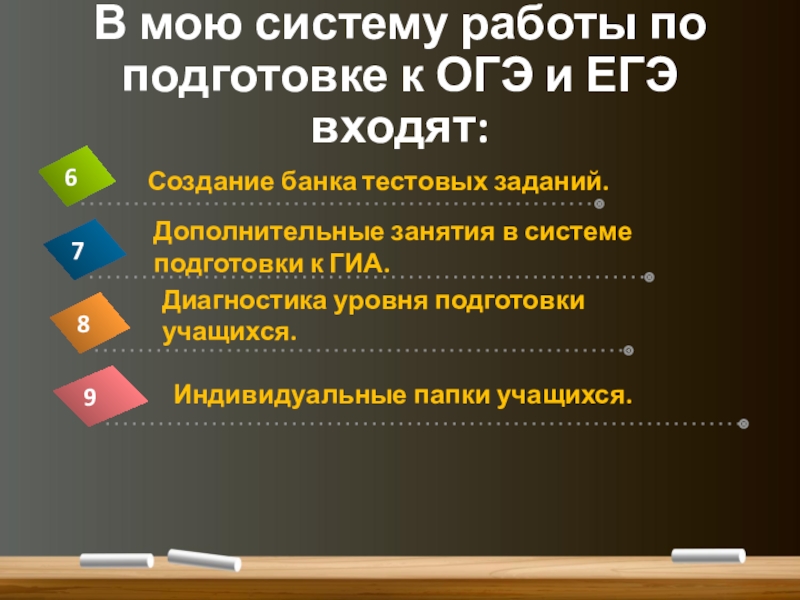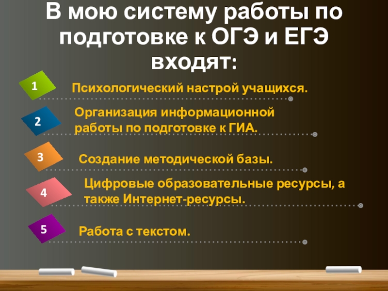 Слайд 3В мою систему работы по подготовке к ОГЭ и ЕГЭ входят: