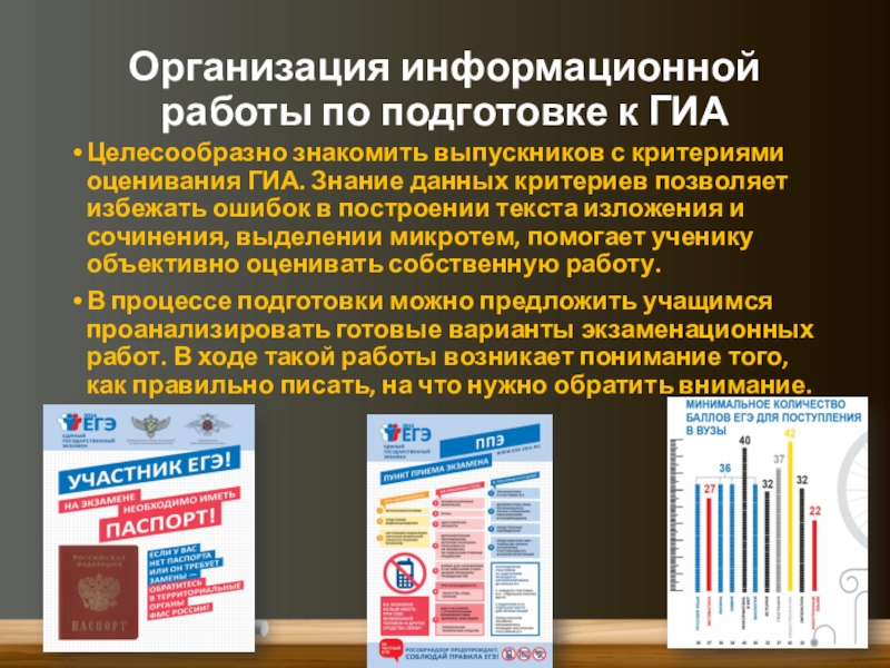 Слайд 7Организация информационной работы по подготовке к ГИА