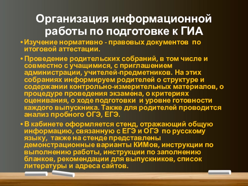 Слайд 6Организация информационной работы по подготовке к ГИА
