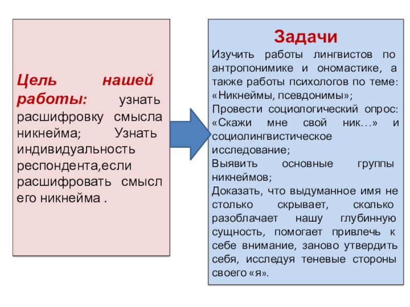 Изучить работы лингвистов по антропонимике и ономастике, а также работы психологов по теме: «Никнеймы, псевдонимы»;