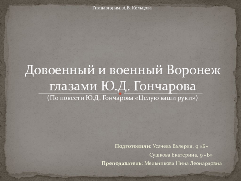 Довоенный и военный Воронеж глазами Ю.Д. Гончарова