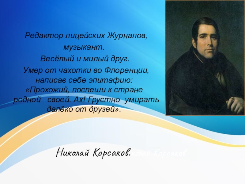 Лицейский товарищ Пушкина; один из самых любимых и лучших