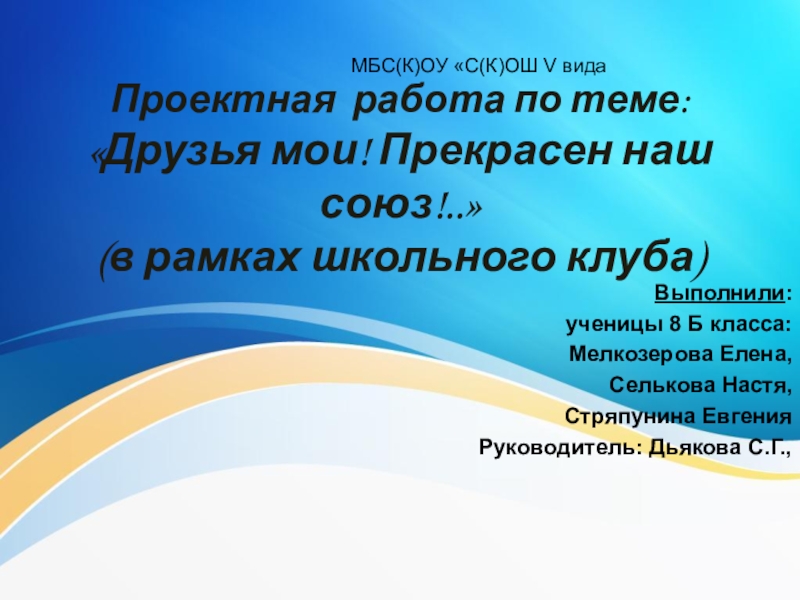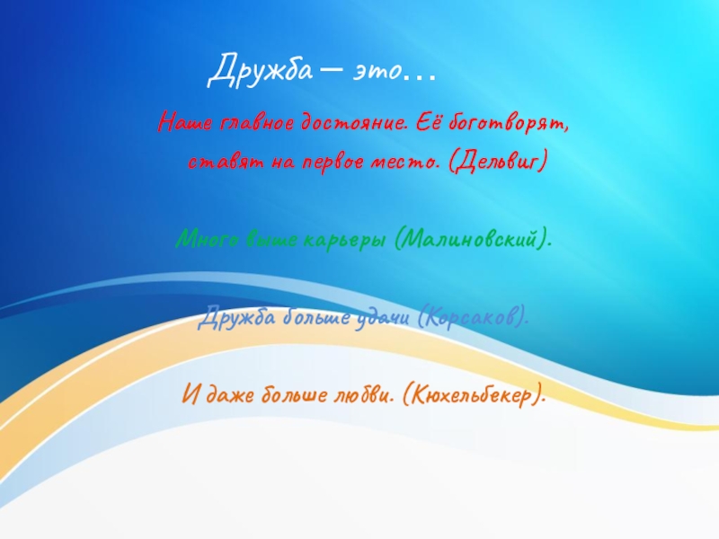 Слайд 2Друзья мои! Прекрасен наш союз!