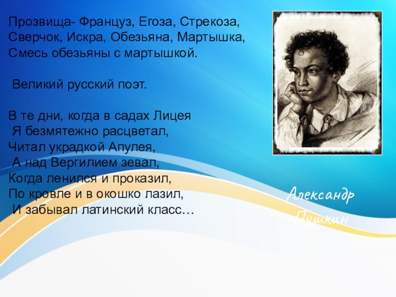 Лицейские годы имели огромное значение в жизни Пушкина. В минуты горя и отчаяния он неизменно возвращался в эпоху своей юности, вспоминал друзей, Царское Село…