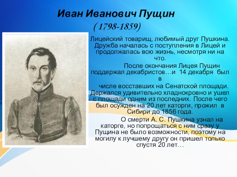 После окончания Лицея Пущин поддержал декабристов…и 14 декабря был в