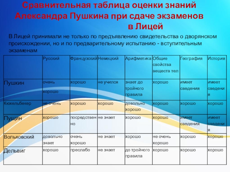 В Лицей принимали не только по предъявлению свидетельства о дворянском происхождении, но и по предварительному испытанию - вступительным экзаменам