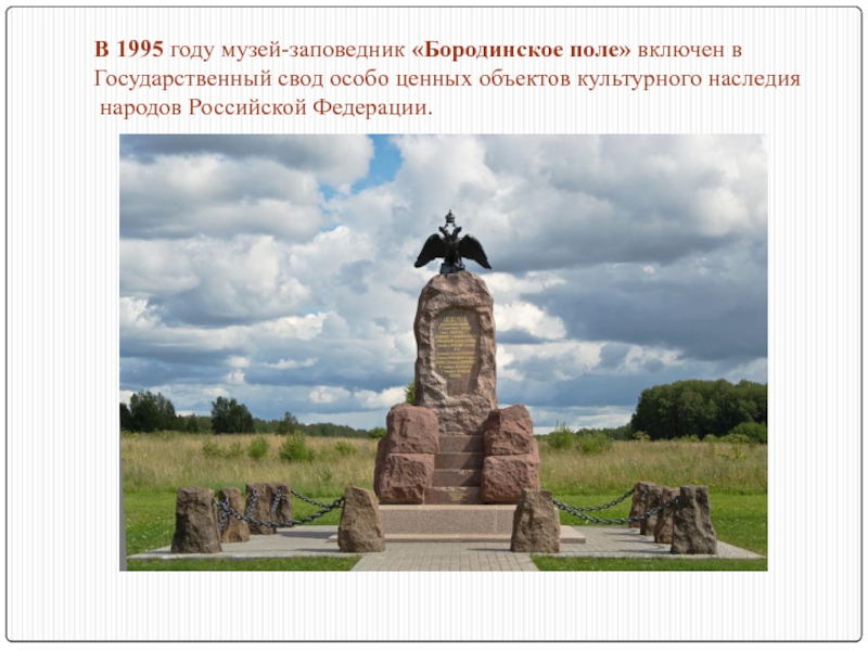 В 1995 году музей-заповедник «Бородинское поле» включен в Государственный свод особо
