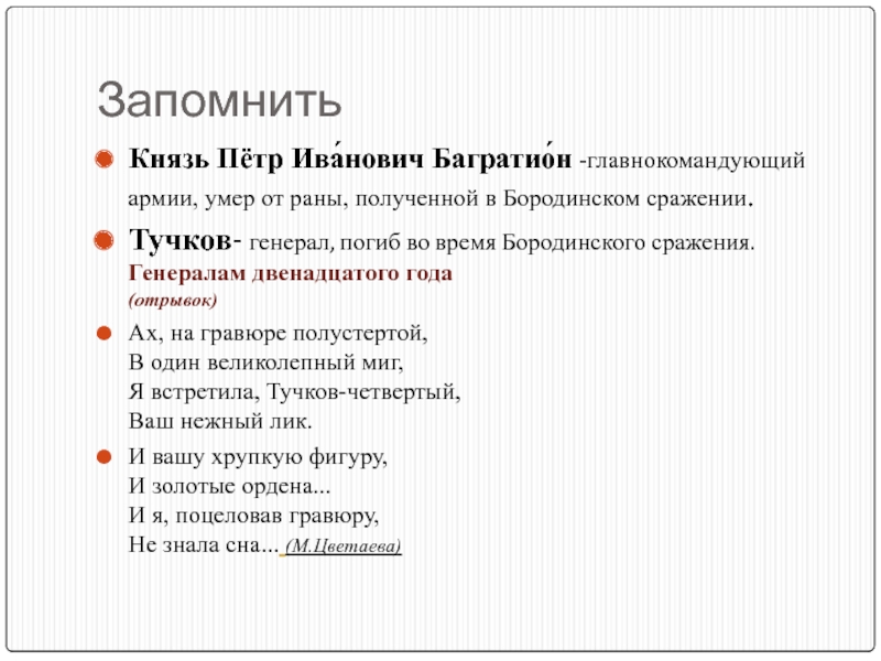 генерал, погиб во время Бородинского сражения. Генералам двенадцатого года (отрывок)