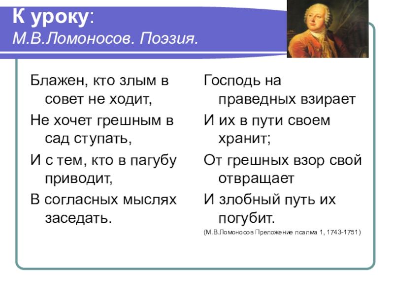 (М.В.Ломоносов Преложение псалма 1, 1743-1751)