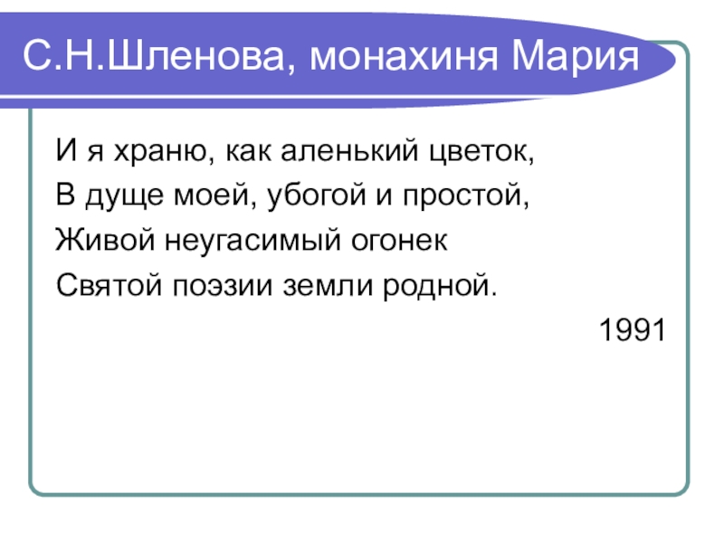 Слайд 2С.Н.Шленова (монахиня Мария)
