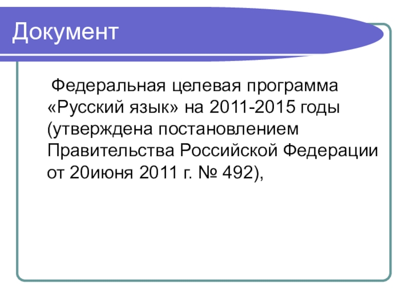 Федеральная целевая программа «Русский язык» на 2011-2015 годы