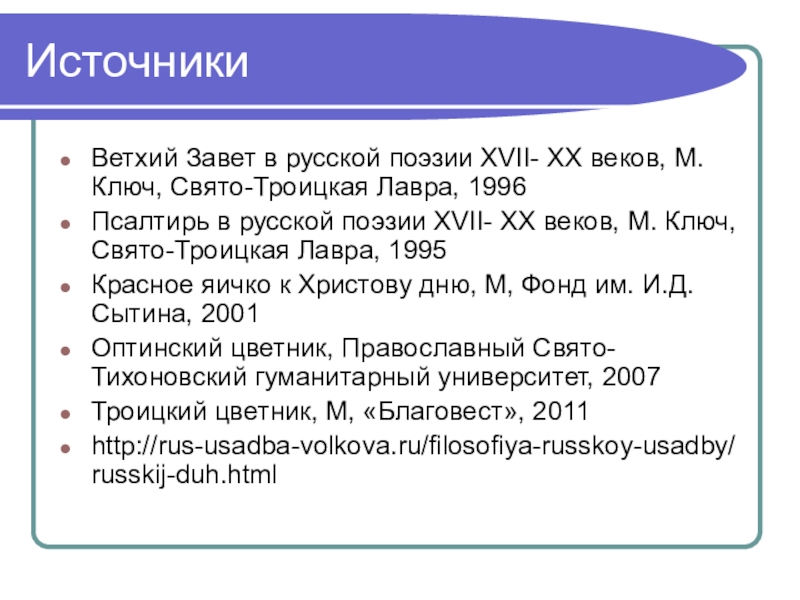 Ветхий Завет в русской поэзии XVII- XX веков, М. Ключ, Свято-Троицкая