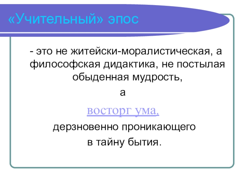 - это не житейски-моралистическая, а философская дидактика, не постылая