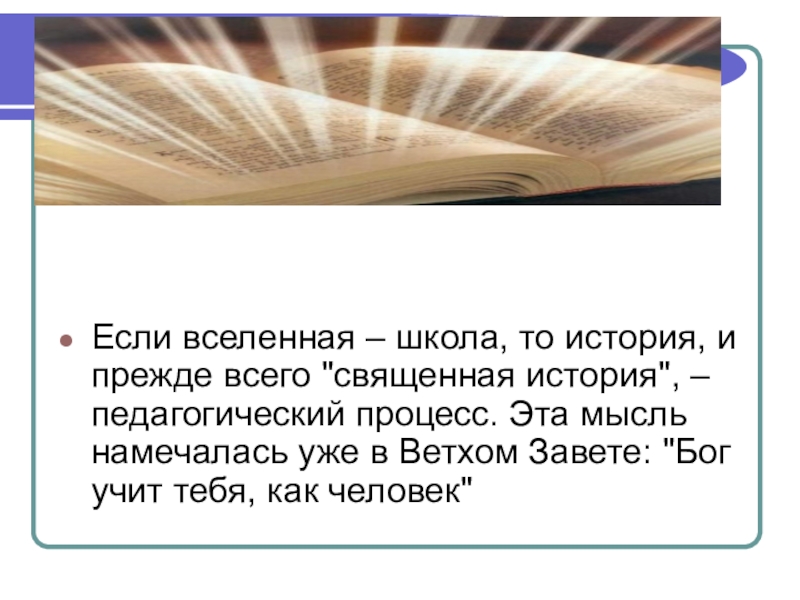 – педагогический процесс. Эта мысль намечалась уже в Ветхом Завете: "Бог учит тебя, как человек"
