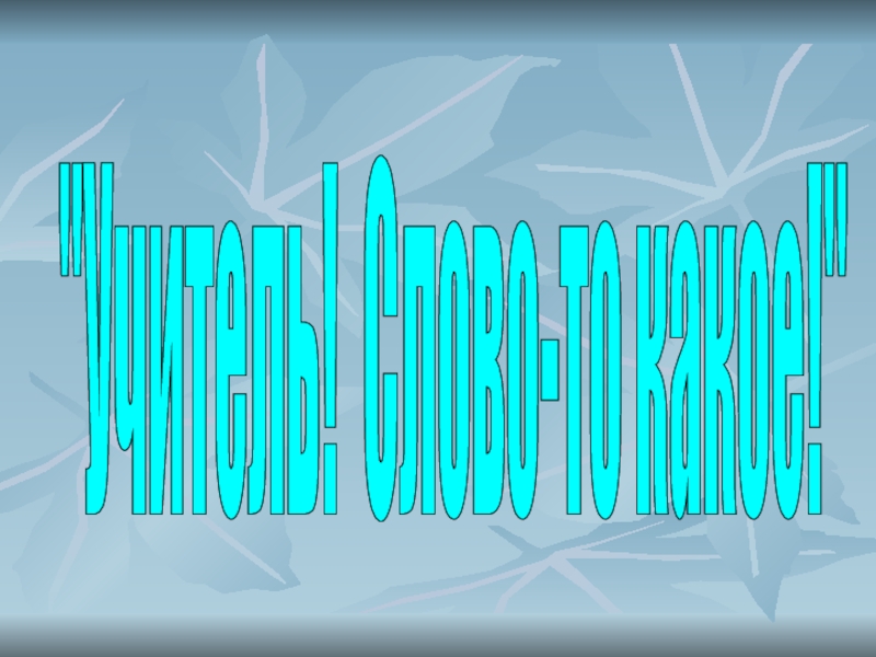 УЧИТЕЛЬ, ТИХИЙ ТРУЖЕНИК, И ТЫ,