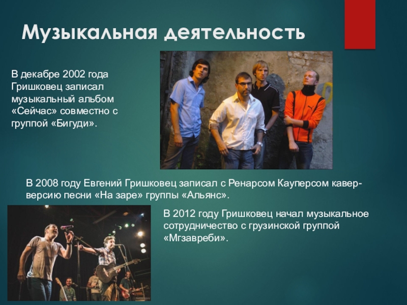 В 2012 году Гришковец начал музыкальное сотрудничество с грузинской группой «Мгзавреби».