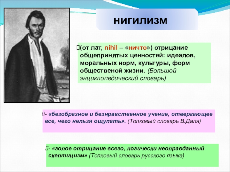 - «голое отрицание всего, логически неоправданный скептицизм» (Толковый словарь русского языка)