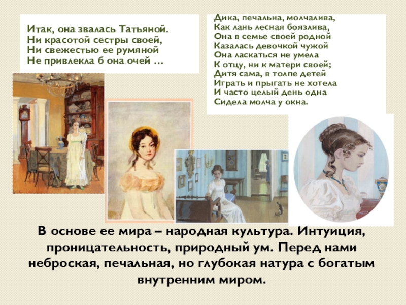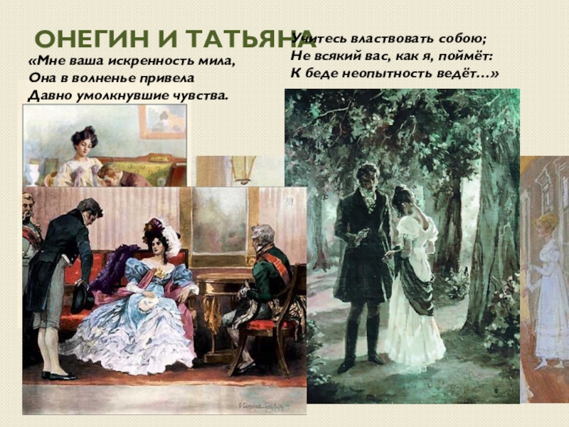 Знаток «науки страсти нежной», но сумел разглядеть в Татьяне её глубину, непохожесть на других;