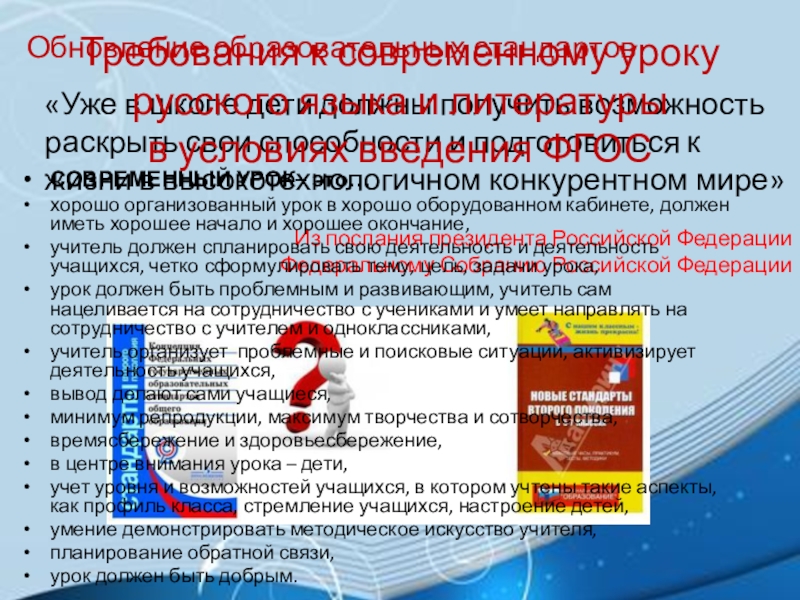 Требования к современному уроку русского языка и литературы