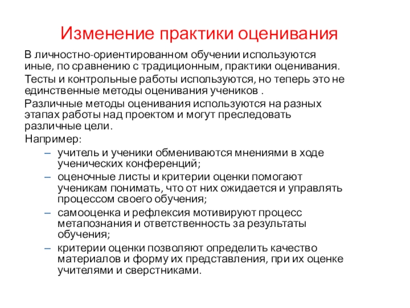 Тесты и контрольные работы используются, но теперь это не единственные методы оценивания учеников .
