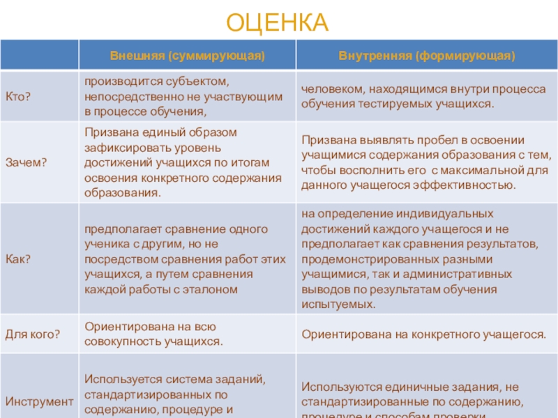 не предполагает как сравнения результатов, продемонстрированных разными учащимися, так и административных выводов по результатам обучения.