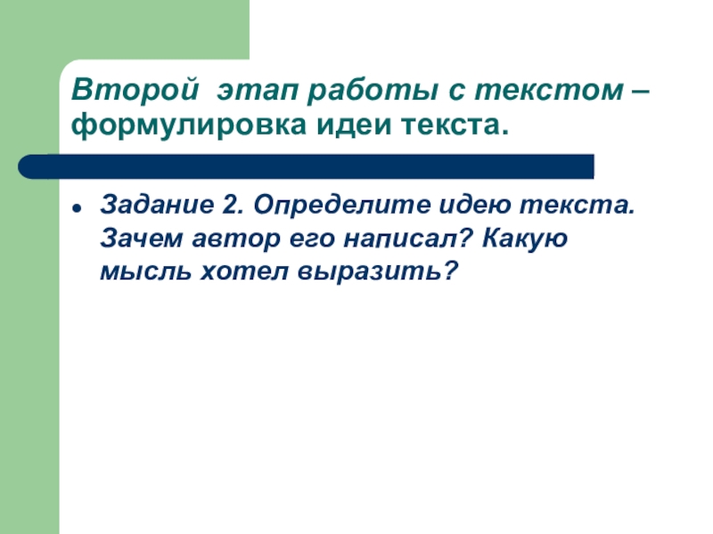 Слайд 14Второй этап работы с текстом – формулировка идеи текста.