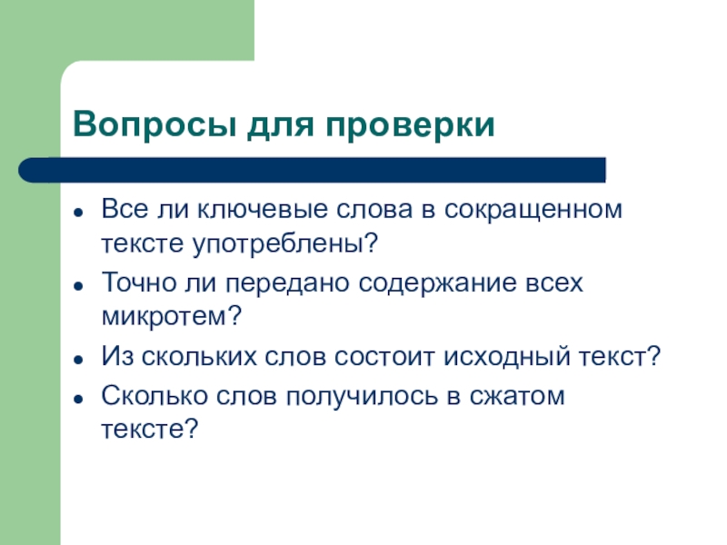 Все ли ключевые слова в сокращенном тексте употреблены?