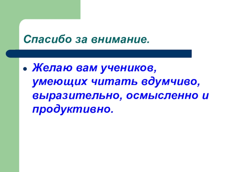 Желаю вам учеников, умеющих читать вдумчиво, выразительно, осмысленно и