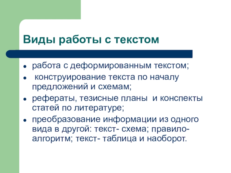 Слайд 10Виды работы с текстом