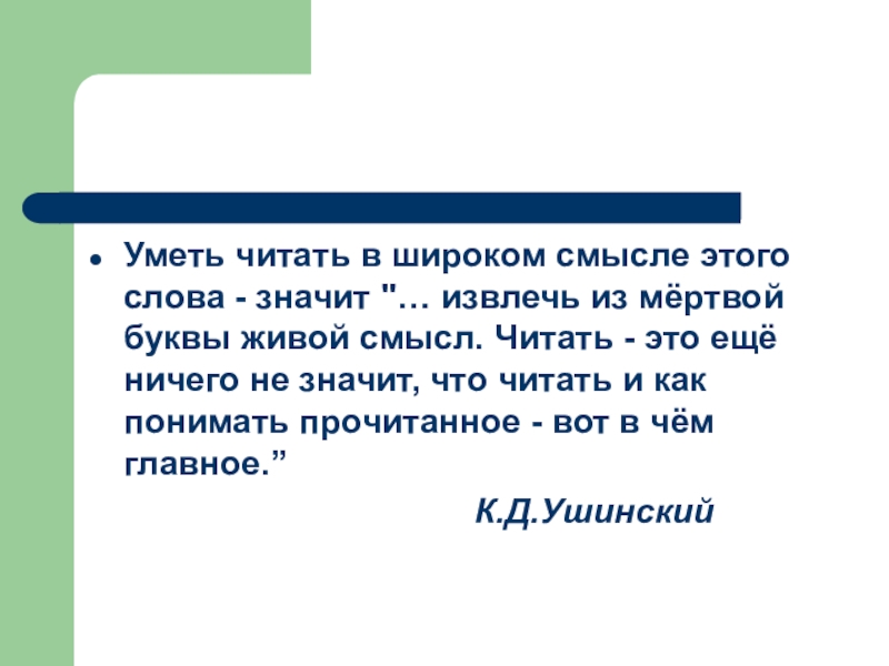 из мёртвой буквы живой смысл. Читать - это ещё ничего не значит, что читать и как понимать прочитанное - вот в чём главное.”