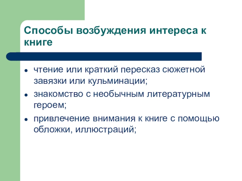 Слайд 7Способы возбуждения интереса к книге