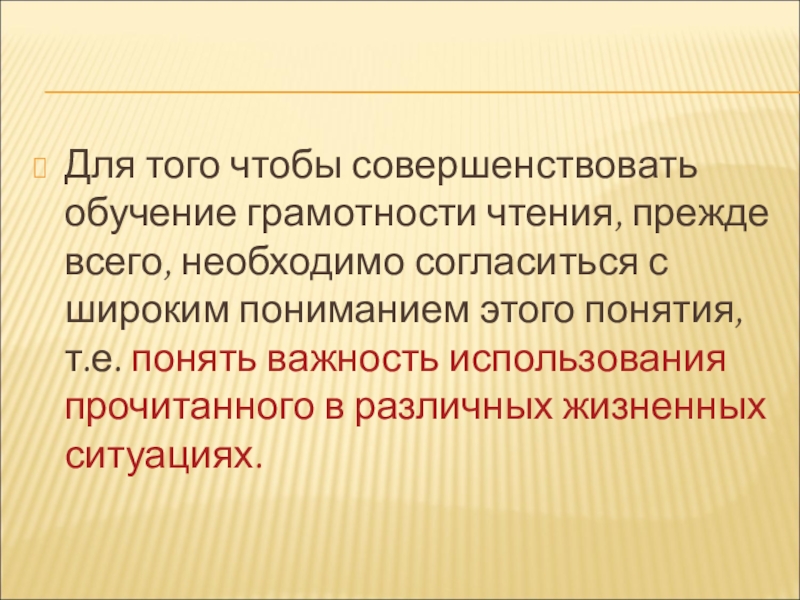 Слайд 11Для того чтобы совершенствовать обучение грамотности чтения, прежде всего, необходимо согласиться