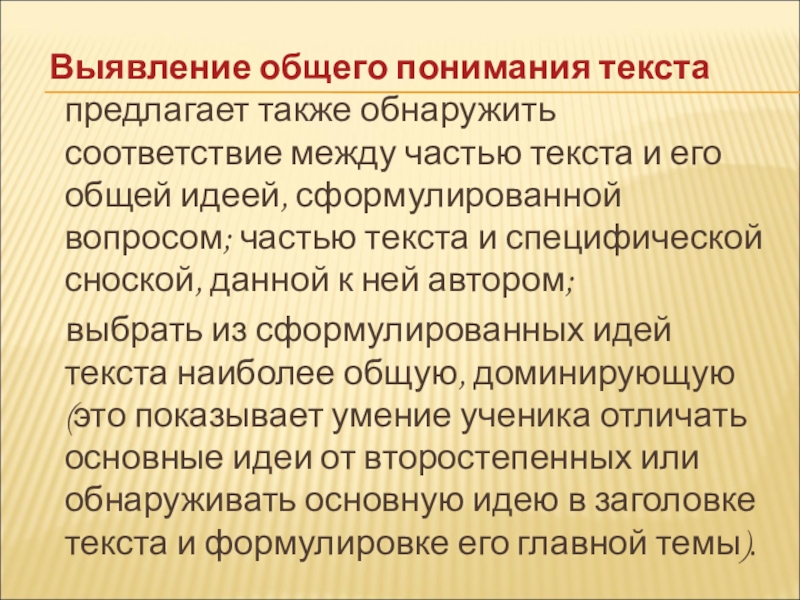 Слайд 6 Выявление общего понимания текста предлагает также обнаружить соответствие между частью