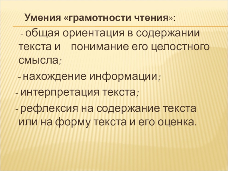 Слайд 3 Под грамотностью чтения предлагается понимать способность человека к осмыслению
