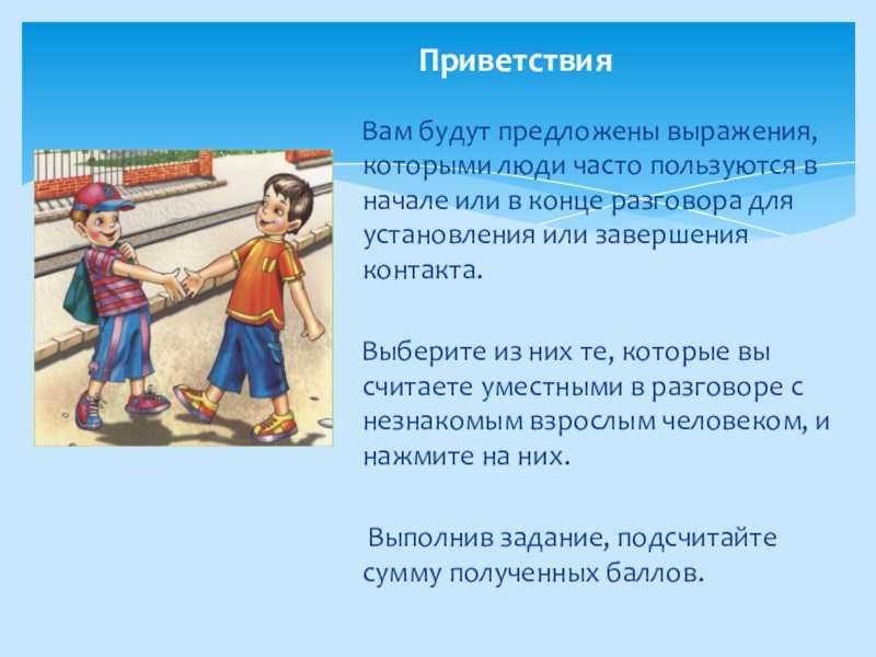 Выберите из них те, которые вы считаете уместными в разговоре с незнакомым взрослым человеком, и нажмите на них.