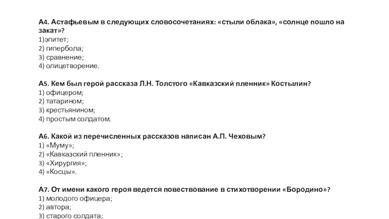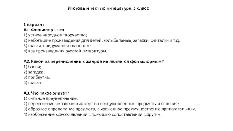 Итоговый тест по литературе. 5 класс