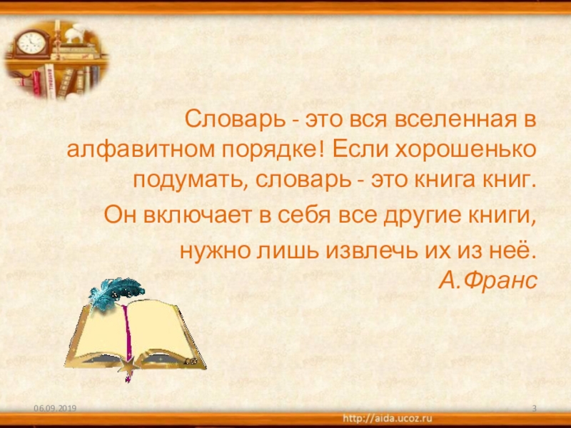 Слайд 3 Словарь - это вся вселенная в алфавитном порядке! Если