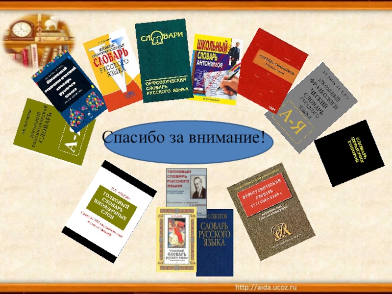 словарей: орфографический, этимологический, фразеологический, словарь антонимов, синонимов.