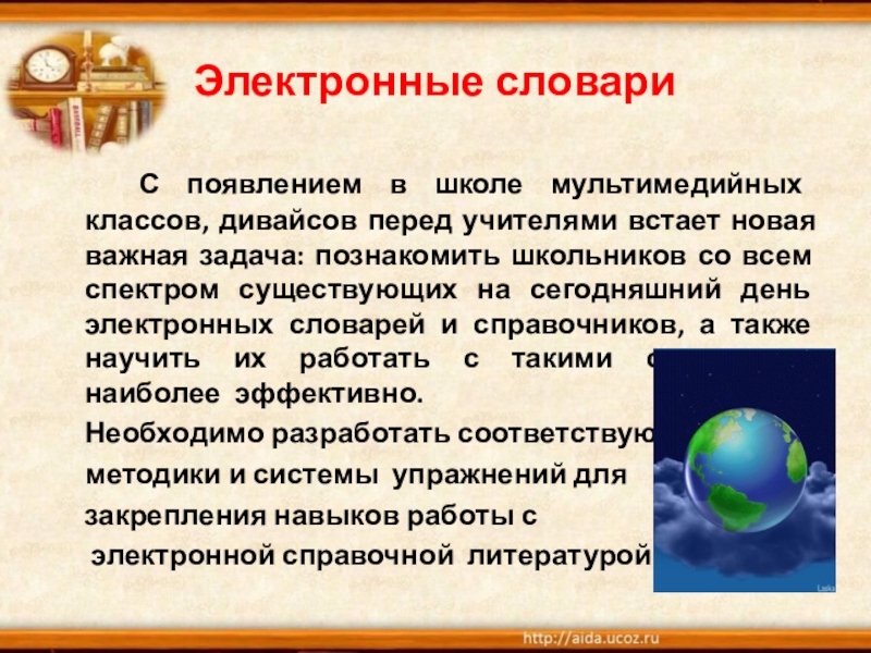 новая важная задача: познакомить школьников со всем спектром существующих на сегодняшний день электронных словарей и справочников, а также научить их работать с такими словарями наиболее эффективно.