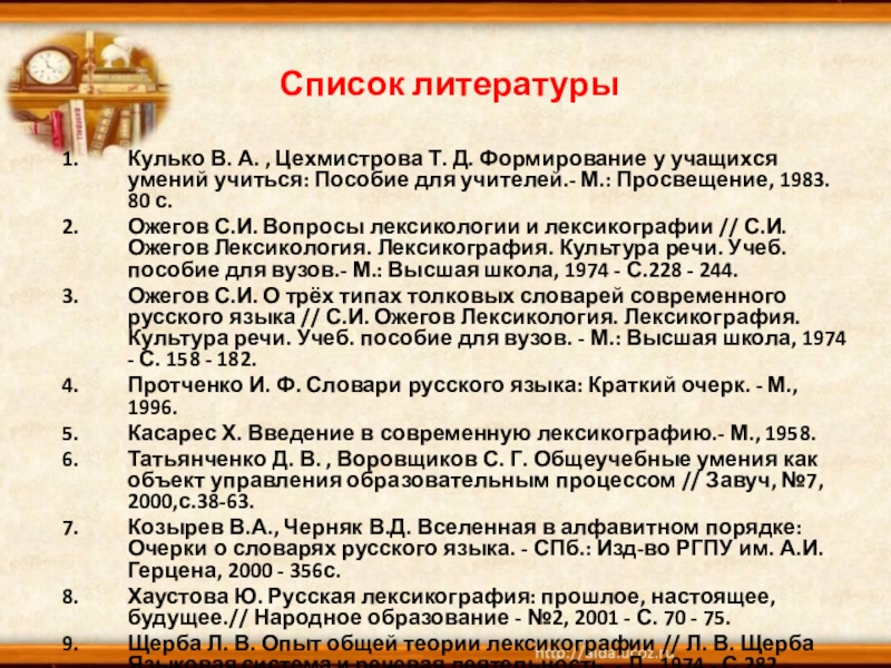 Хаустова Ю. Русская лексикография: прошлое, настоящее, будущее.// Народное образование - №2, 2001 - С. 70 - 75.