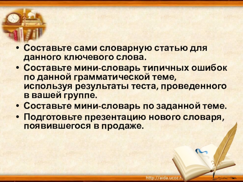 Слайд 26Составьте сами словарную статью для данного ключевого слова.