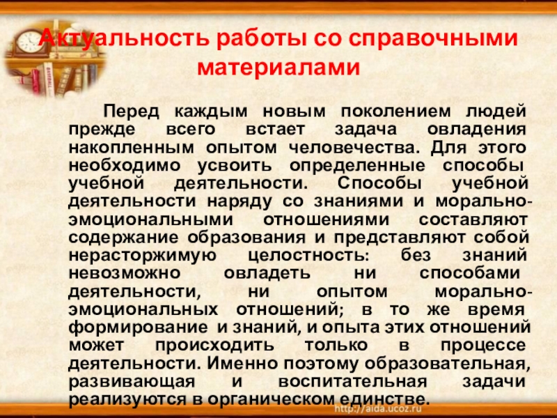 показывать необходимость умения пользоваться справочным материалом в современное время;