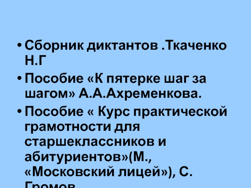 Слайд 19Сборник диктантов .Ткаченко Н.Г