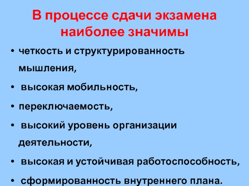 Слайд 3В процессе сдачи экзамена наиболее значимы