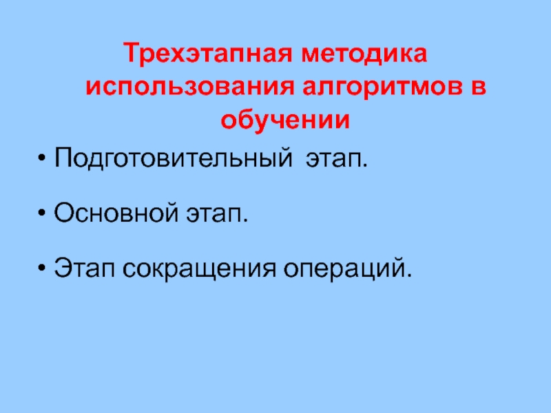 Слайд 12Трехэтапная методика использования алгоритмов в обучении