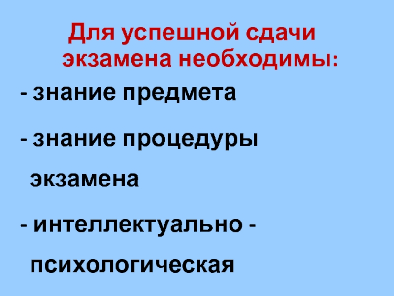 Слайд 2Для успешной сдачи экзамена необходимы: